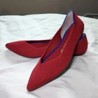 Elevate your casual look with these classic Rothys ballet flats in a beautiful red color. These slip-on flats feature a pointed toe and a comfortable foam insole, making them perfect for all-day wear. The knit fabric type and rubber outsole material ensure durability and breathability, making them ideal for spring. The flats are available in UK Shoe Size 6, US Shoe Size 8.5, and EU Shoe Size 39, with a standard shoe width. The textile lining material and upper material further add to the comfort and breathability of these flats. These Rothys ballet flats are perfect for any casual occasion and are a must-have addition to any wardrobe.