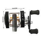 Application It is suitable for catfish, salmon, eel, striped bass, tuna and inshore and deep sea fishing. Specifications Reel Model: #30 Material: Metal, EVA, Stainless Steel, Brass Style: Modern Color: Black Shape: Round Feature: Anti-reverse Hand Orientation: Right Hand Fishing Type: Freshwater Fishing/Saltwater Fishing Resistance: 13.61kg/30lbs Ball Bearing: 2BB+1RB Line Capacity: 4.53kg/109.7m/10lbs/120yard; 0.3mm/110m/0.012in/120.3yard Gear Ratio: 5.0:1 Gross Weight: 0.22kg/0.48lbs Product Size(L*D): 6*5.4cm/2.36*2.12in Package Size: 12*11*7.5cm/4.7*4.3*2.9in Package Included 1*Round Baitcasting Reel Have a nice day~ Description Description Our round baitcasting reel is made of high-quality metal, stainless steel, brass and EVA material, which is corrosion and rust-resistant and can be used for a long time. The sound switch alerts you to line disengagement. The anti-reverse ball bearing helps you reel in your line. Combining a round baitcasting reel with a braided line and a carbon fiber rod (not included) can make for a great fishing and baitcasting rod combo. It is ideal for your sea fishing, come and bring it home! Key Features Build to Last : The product's high-quality metal and EVA materials are highly resistant to impact and abrasion, ensuring a long service life. Fishing Assistant: With it, you can easily achieve sea fishing. It is a motivational aid for your fishing, allowing you to drag your rod and cast with less effort. High Stability: It features precision-cut brass gears and stainless steel ball bearings that help ensure long-lasting performance. In addition, the centrifugal brake applies consistent pressure for exceptionally accurate throwing. Large Capacity: It has a large line capacity(10lbs/120yard; 0.3mm/120.3yard) and can easily handle lengths of braided or monofilament lines(not included) for a variety of rods (not included) and target species. Thoughtful Design: The ergonomic thumb lever out release, star unloading adjustment, and up to 30 pounds of smooth carbon fiber drag will make reeling in your line easier. Easy to Use: You just need to fix the bottom of the product on the reel seat of the fishing rod (not included) and tighten it to start using it. Easy to Carry & Store: The product is lightweight(less than 0.48lbs ) and small in size( 2.36*2.12in ), making it easy for you to carry it on the go. It won't take up too much space when you store it. Hassle-free Cleaning: Thanks to its smooth surface and simple structure, you can easily clean it with water and a rag (not included). Ideal Gift: Thanks to its practicality and aesthetics, you can give it to your family or friends who enjoy fishing. Details Sturdy Base: It attaches to the fishing rod's reel seat, which is tightened and ready for use. 2 Non-slip EVA Handles: They can be easy for you to hold and won't slip easily. Clear Engraved Marks: The data marking of the line capacity is clearly displayed on the body of the product to help you better understand the capacity of this product. Practical Sound Switch: It alerts you when the line is disengaged, helping you react in time. Application It is suitable for catfish, salmon, eel, striped bass, tuna and inshore and deep sea fishing. Specifications Reel Model: #30 Material: Metal, EVA, Stainless Steel, Brass Style: Modern Color: Black Shape: Round Feature: Anti-reverse Hand Orientation: Right Hand Fishing Type: Freshwater Fishing/Saltwater Fishing Resistance : 13.61kg/30lbs Ball Bearing: 2BB+1RB Line Capacity: 4.53kg/109.7m/10lbs/120yard; 0.3mm/110m/0.012in/120.3yard Gear Ratio: 5.0:1 Gross Weight: 0.22kg/0.48lbs Product Size(L*D): 6*5.4cm/2.36*2.12in Package Size: 12*11*7.5cm/4.7*4.3*2.9in Package Included 1*Round Baitcasting Reel Notes This product is for right-handed cranking only. Please note the size of the product before ordering. This product is ideal for fresh or saltwater use. We recommend properly rinsing the reel after use in saltwater. Please note that this product does not include a fishing line or rod. Please allow the slight color difference caused by the shooting light and 1-3cm error due to manual measurement, and make sure you do not mind before you order. Payment Delivery details Terms of sales About us Contact us Payment We accept ebay payment 。 Fees such as import duties, taxes are not included in the item price or shipping costs. These charges are the buyer's responsibility. Delivery details Shipping: 2-9 working days to: USA Terms of sales We maintain high standards of excellence and strive for hundred percent customer satisfaction. Feedback is very important to us. We hope that you contact us immediately before you give neutral or negative feedback, so that we can address your concerns. It is impossible to address issues if we do not know about them! About us Your satis faction is our ultimate goal. We work hard to earn your trust and future business. Our certified technicians have tested each item before shipping. The unit comes with 1 year limited warranty on all manufacturing defects. a) If you receive a defective item, you may return it or ask for a discount. Please contact us within 14 days after you receive the package. b) What you returned must be intact and in its original packaging as re? u. Customer is responsible for shipping costs of the returned item. c) We will cover the cost of shipping back t with the shipping rate indicated in the registration page. We will send you a new unit or refund the full payment you paid. Thank you. Contact us Business Hour Business Hour: Monday To Friday: 8:30 AM to 5:00 PM (Beijing China time) Due to time zones, our reply to your questions may not be immediately. But within above working time, we will reply your email within 24 hours. If it's non-workdays, please kindly be patient and wait till Monday. Please contact us with ebay message. Please feel free to contact us if you have any questions. Monday To Friday: 8:30 AM to 5:00 PM (Beijing China time) Due to time zones, our reply to your q