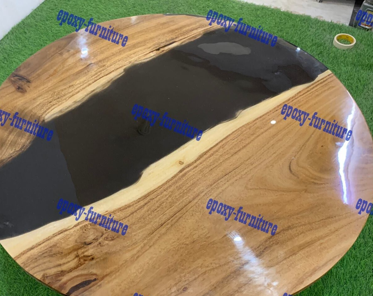 We Accept Custom Order too please contact us. Elevate your living space with our Modern Round Epoxy Coffee Table, where contemporary design meets timeless elegance. This stunning piece seamlessly combines the sleek sophistication of black epoxy resin with the warmth and character of natural wood, creating a focal point that transcends trends. Key Features: Contemporary Aesthetics: The modern, round silhouette of this coffee table makes it a chic addition to any living room. Its clean lines and minimalist design contribute to a contemporary aesthetic that effortlessly complements various interior styles. Black Epoxy Resin Top: The tabletop is adorned with a sleek black epoxy resin finish, adding a touch of luxury and depth to the surface. The resin not only provides a high-gloss shine but also ensures durability, making it resistant to scratches and stains. Wooden Base: The solid wooden base serves as both a sturdy foundation and a natural, organic element that softens the modernity of the black resin. Crafted with care, the wooden base contributes warmth and character to the overall design. Versatile Functionality: Whether you're enjoying your morning coffee, hosting friends, or simply displaying your favorite decor items, this coffee table offers versatile functionality. Its round shape encourages easy conversation and creates a welcoming centerpiece in your living space. Handcrafted Excellence: Each coffee table is meticulously handcrafted by skilled artisans, ensuring a level of excellence that goes beyond mass-produced furniture. The attention to detail and dedication to quality craftsmanship make this piece truly unique. Easy Maintenance: The combination of black epoxy resin and solid wood not only enhances aesthetics but also facilitates easy maintenance. Simply wipe the surface with a soft cloth to keep it looking pristine. Ideal for Modern Living Spaces: Whether you're furnishing a contemporary apartment, a stylish loft, or a modern home, this coffee table effortlessly enhances the ambiance of your living space, making a statement without overpowering the room. Specifications: Dimensions: 24"x24" Inches Stand Size: 18" Inches tall Black Iron Legs Materials: High-quality wood, epoxy resin Colors: Black Finish: Glossy and durable Shipping and Packaging: * We can make the table top similar to this as it is handmade or natural process you will not get the same as shown in picture but you will get the similar one * The table top is made in Agra India & fully handmade. * The top will be delivered by FedEx or DHL free of cost door to door. * If there is any local tax, custom duties or Vat will be paid by the buyer at the destination. * The parcel is dispatch with proper packing & fully insured covering all kind of risk. Thanking You...