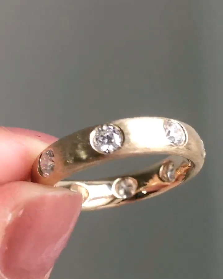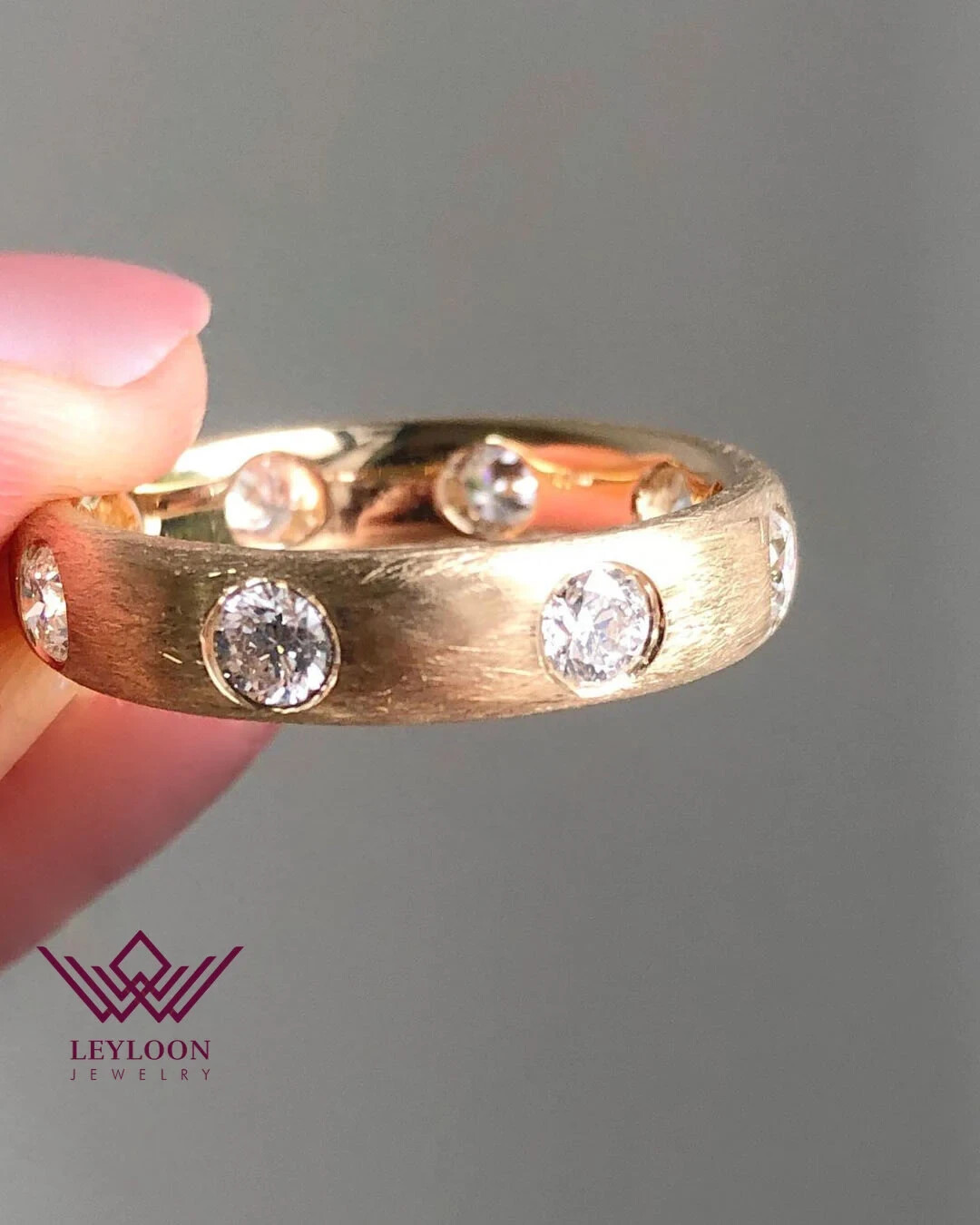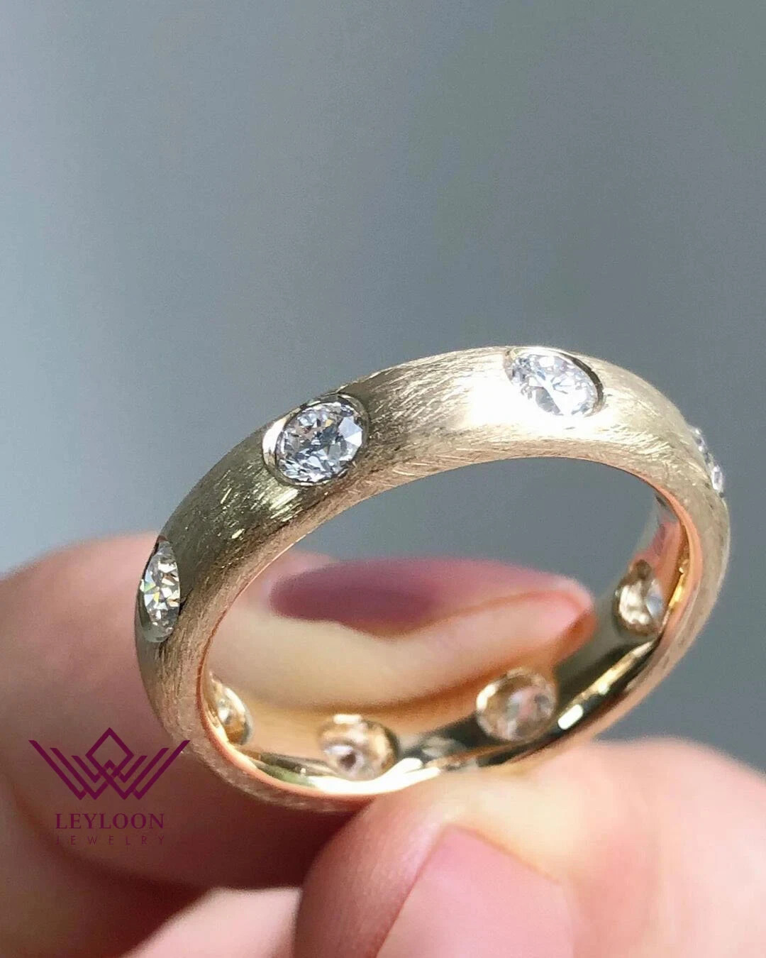 Round Cut Eternity Band D Color VVS Moissanite Ring ๐ Available Metals: A) 5X Platinum Vermeil, B) Solid 10K Gold, C) Solid 14K Gold, D) Solid 18K Gold, E) Solid 950 Platinum. โ HIGHEST QUALITY Certified White Gold, Rose Gold, Yellow Gold & 950 Platinum. (Not Trash). ๐ Ring Size: 2,3,4,5,6,7,8,9,10,11,12,13,14,15,16 and anything between these ring sizes available. It could be 1/4, 1/2, or 3/4. We Fit It to your Exact Finger Size no matter what size you want. ๐ Main Stone: HARDEST Quality VVS GRA Certified Hand Cut Moissanite (Pass Diamond Testers) โจ Side Stones: Premium Quality VVS Moissanite. (Pass Diamond Testers) ๐ Certified: GRA - GRC ๐ Polish: Excellent Polish. Shiny & Clean for Maximizing Sparkles. โฆ Cut: Hand cut Excellent cut & Symmetry with Crisp & Sharp Edges/Corners. ____________________ ๐ 100% Handmade with GORGEOUS & Accurate Details. Itโs an Art, not only a Valuable Material. ๐ 60 Days Money Back Guarantee for Any Reason even if you don't Fall In Love with it. ๐คฏ FREE LIFETIME Main Stone Warranty & Side Stone Replacement. (No Color Change). ๐ FREE LIFETIME Jewelry Cleaning & Re-plating. ๐ Hypoallergenic. Skin Friendly. Doesnโt cause any type of Allergies. ๐ Customizable with/to Your Favorite Stone/Jewelry Type & Shape. ๐ FREE STUNNING Random GIFTS On Every Order (we sell them for +$200 up to over +$700). ๐ฅฐ Amazing Wooden Gift Boxes for Your Main Jewel & its Gifts. ๐ฅณ Gift Wrapping Available (we wrap with no tags or receipts, ready to present). ๐คฉ VIP Customer Service to Make Your Dreams Come True in the Most Fantastic Way. ๐ FREE SUPER FAST FedEx Express Shipping. ____________________ ๐โ + Our 5X Platinum Vermeil: Platinum is 9.4 times RARER & slightly more DURABLE than gold. Rings with platinum end up more EXPENSIVE than gold because the DENSITY of platinum is a lot HIGHER and the QUALITY is EXTREMELY PURER. Rings THICKLY plated FIVE TIMES with platinum offer MUCH STRONGER PROTECTION against wear and scratches than gold plated jewelry. Therefore they LAST the LONGEST while giving you a SHINY LOOK ALL THE TIME. ๐โ + Our Rare Stone Quality: Here you have the NATURAL looking color of the diamonds in a RARE size with extraordinary VVS1 clarityโฆ Weโre offering the GREATEST QUALITY and VALUE at the BEST PRICE with this design by using very SPECIAL types of GRA Certified Moissanite stones. Natural diamonds in this color, clarity and size are super rare and very hard to find. Some of them easily cost over $10,000 per carat. (please message me for natural diamonds like this color, size and shape so I can give you the accurate price based on your preferences) ____________________ ๐ข๐๐ FREE FAST EXPRESS SHIPPING Processing + Shipping = Receiving Time PROCESSING: Only 1 available. This ring will be shipped within 48 hours. (Other sizes require customization for 2-3 weeks. ) SHIPPING: 2-6 days via FedEx Express for FREE โ Youโll get updated with the tracking code, once your package is shipped. โ We ship with insured FedEx only which is very secure. โ An adult signature is required at the time of delivery. _____________________ โ๐๐ CUSTOMIZATION/PERSONALIZATION: Custom orders with me are SUPER EASY & COMFORTABLE, no matter if youโve never done it before or youโve done lots of them. ๐ค I break down everything into small steps. And we go through the steps one by one together. On each step, youโll get to pick or guide me from the options I represent. ๐ Once we get to the end, your dream comes true. ๐คฉ๐ Because every single detail is just exactly what you want. ๐๐ ๐จ HOW TO DESIGN YOUR RING: A โ Send me some/one image similar to your idea. Or tell me whatโs your favorite shank, profile or stone? So I can show you some options to choose from. B โ Next, I will start designing it right away. Iโll send you some screen shots from what I designed. We can adjust any part of it together, until itโs exactly the way you want it to be. C โ After we get to the ideal conclusion, Iโll render several Ultra High Quality 3D images and a 4K video, so you see what the end result is gonna look like in reality. D โ The moment you approve everything, we start making it. Once itโs finished, weโll ship it the same day. + 3D IMAGE SAMPLES: Before you order yours, you can ask me for some samples of the 3D rendered images and videos. Youโre gonna absolutely love the quality, because they look like real rings. ๐คฉ๐ + Designing your dream ring with me is gonna be a fantastic experience. While you just sit and order, youโll watch how I take care of everything from your idea to the end product in the SIMPLEST & GREATEST way possible.โ โ------------ ๐ AVAILABLE GEMS: All stones are available - Colorless & Colorful Moissanite or Simulated Moissanite. Natural & Lab Grown Diamonds in Colorless or Colorful. Natural and Lab made Emerald, Ruby, Sapphire, Amethyst, etc. Just ask! ๐ฅ AVAILABLE METALS: All metals are available - 925 Sterling Silver, 5X Platinum Vermeil, 9K Solid Gold, 10K Solid Gold,14K Solid Gold, 18K Solid Gold (in Rose, White or Yellow), Platinum 950. ๐ AVAILABLE MATCHING PIECES: We can make matching pieces for this product. Engagement Rings, Bridal Sets, Wedding Bands, Earrings, Studs, Hoops, Bracelets, Bangles, Necklaces, Pendants, and anything youโd dream of. We can design all to set with this item. ๐จ๐จ๐ง๐ฆ AVAILABLE OTHER JEWELRY: We make jewelry as per occasion and celebration like birthdays, birth months, anniversaries, motherโs day, valentine's day, fatherโs day, memorials, thanksgiving, zodiac signs, graduation days, and many more per your request. ____________________ โโโโโ 5 STAR PRISTINE PROMISES: โฆ๏ธ 100% Satisfaction Guaranteed โฆ๏ธ Ethically Sourced โฆ๏ธ FREE Lifetime Ring Resizing โฆ๏ธ FREE Complimentary ENGRAVING โฆ๏ธ 100% Conflict Free Materials 