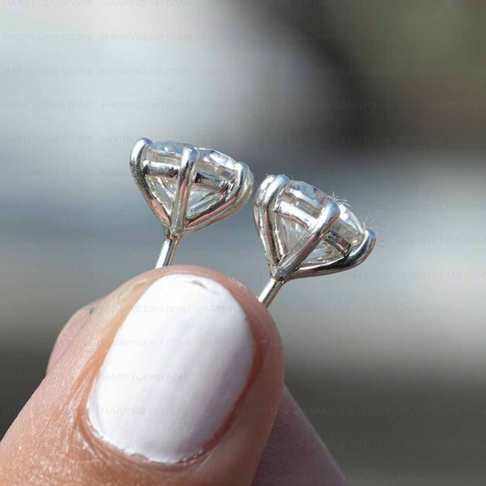 $ 34.111 ct Moissanite Princess Cut Stud Earrings in 14K White Gold with Screw Backs