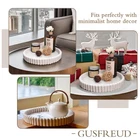 【ELEGANT DESIGN】Our decorative trays for coffee table is a masterpiece of craftsmanship that showcases the perfect blend of elegance and functionality, with a beige color palette and natural rock texture on the surface with wavy edges, adding a touch of sophistication to any setting. 【DECORATIVE CENTERPIECE】Our tray for coffee table measures approximately 11 inches in diameter and 1.5 inches in height is perfect for a stylish and functional coffee table centerpiece decor. The resin material also gives the trays weight and stability, making them perfect for use as large coffee table tray. (On the bottom of each round bathroom tray, we use non-slip pads that will protect your furniture from scratches.) 【MODERN HOME DECOR】Our modern counter tray is made of high quality resin, sturdy and durable. It is perfect for a living room tray, kitchen island tray or round serving tray. The fluted design makes it an ideal modern serving tray. 【CRAFTSMANSHIP OF MASTERFUL PROPORTIONS】Our American and British designers, sculptors, painters, and all our workers have over 20 years of experience in this product field. From the initial design sketch to the final product, every step is meticulously carved and rigorously controlled by craftsmen. Mold making, resin pouring, curing, detail polishing, and even painting – each process embodies the craftsmen's dedication and wisdom, ensuring a highly unified and harmonious sculpture in form, color, and texture. 【HIGH QUALITY GIFT】This round vanity tray is simple and stylish to add a touch of art to your home, while the tray is of high quality with excellent resistance to damage over time, making it a great housewarming gift for your family or friends.