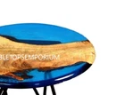 Round Epoxy Wood Dining Table, Live Edge Wooden Table, Ocean Epoxy Round Tables