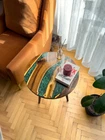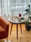 Round Live Edge Resin Coffee Table, Side Table, Mid Century Modern Resin Table
