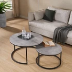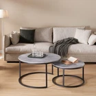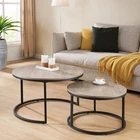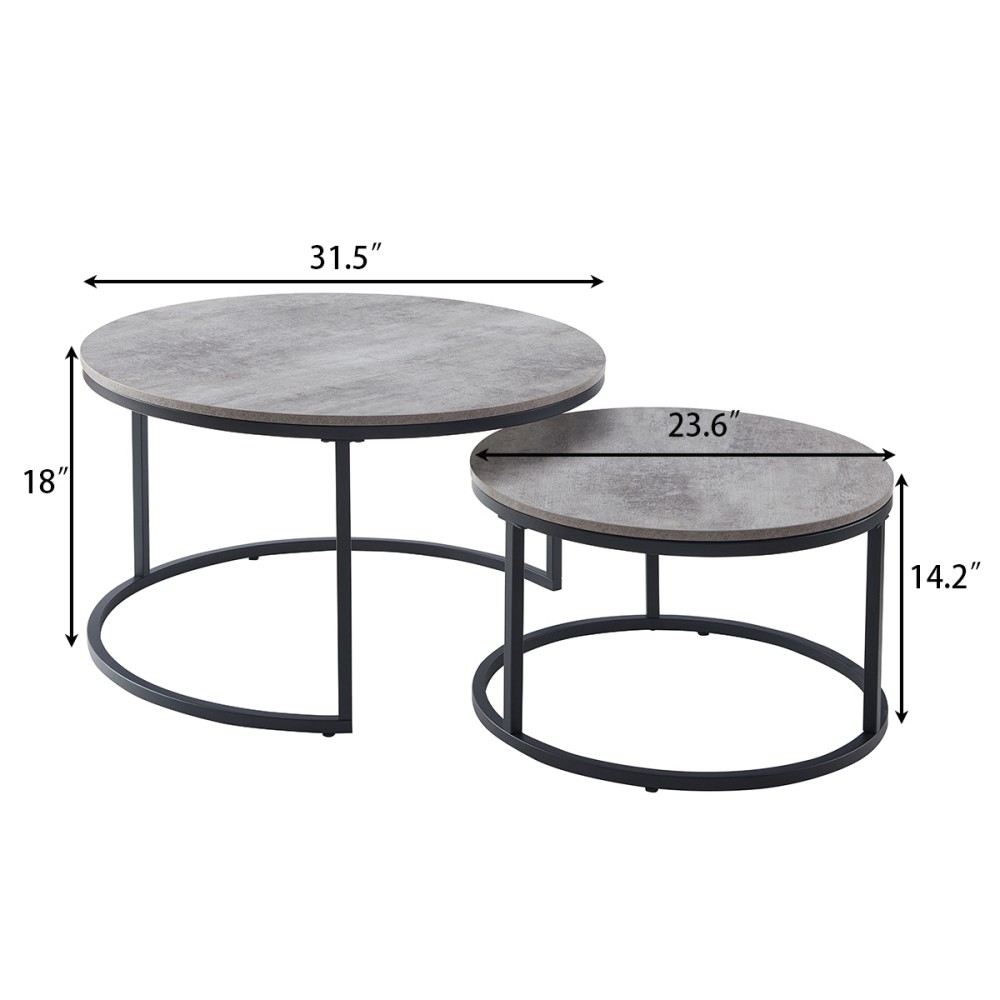 Round Nesting Coffee Table Set of 2 - 3 Color Options, Industrial Metal & Wood Living Room Tables Maximize Space & Style with Industrial-Chic Nesting Tables! Whether you’re furnishing a small apartment or adding functional flair to your living room, our 2-piece round nesting coffee table set delivers. Combining industrial durability with versatile design, each set features a sturdy metal frame and eco-friendly wood construction—available in three distinct finishes to match your decor. Stack them to save space or spread them out for extra surface area—perfect for modern, rustic, Scandi, or boho homes. 🎨 Find Your Perfect Finish Grey Marble Concrete Finish A sleek, contemporary choice—3D textured grey marble veneer mimics authentic concrete aesthetics. Pairs beautifully with modern industrial or minimalist decor, adding a polished touch to your space. Grey Wash Oak Finish Warm and rustic—grey wash oak wood exudes farmhouse charm while keeping an industrial edge. Ideal for rustic, farmhouse, or transitional interiors, bringing cozy character to your living room. Natural Oak Finish Timeless and versatile—natural oak wood with a smooth finish complements Scandi, boho, or modern decor. Adds a touch of warmth without overwhelming your existing furniture. 🌟 Why This Nesting Set Stands Out Industrial-Grade Strength & Stability : Each table features a reinforced circular steel tubing frame with an anti-rust coating, ensuring exceptional sturdiness. Tested to support over 200lbs per table—strong enough for heavy decor, books, or even as an extra seating surface for guests. Eco-Friendly & Durable Construction : Crafted with CARB Phase 2 certified MDF core, guaranteeing zero formaldehyde emissions for a healthy home. The scratch-resistant veneer (marble or wood) stands up to daily wear and tear, while the smooth surface is a breeze to clean—just wipe with a damp cloth. Space-Saving Nesting Design : The innovative two-tier system offers flexible configurations. Use the tables separately (31.5" large + 23.6" small) for expanded surface area when hosting or entertaining, or stack them compactly (18"H total) to tuck away in corners—perfect for small living spaces, apartments, or condos. Tool-Free 15-Minute Assembly : Skip the frustration of complicated furniture setup. All components come pre-drilled with numbered parts and an illustrated manual. We include ergonomic rubber feet (to protect your floors) and all necessary hardware—no extra tools required. Have your tables ready to use in under 15 minutes! Versatile Decor Appeal : Beyond coffee tables, these round accent tables work beautifully as side tables beside sofas or chairs, plant stands, or display tables for your favorite decor pieces. The black metal frame and varied wood finishes blend seamlessly with multiple decor styles. 📏 Product & Package Specifications (All Finishes) Specification Details Materials CARB-Certified MDF + Reinforced Steel Frame Large Table Dimensions 31.50"L × 31.50"W × 18.00"H Small Table Dimensions 23.60"L × 23.60"W × 15.00"H Table Thickness 3.50" Total Product Weight 34.00 lbs Package Dimensions 34.40"L × 34.10"W × 4.30"H Package Weight 37.00 lbs 🛡️ Shop with Complete Confidence 1-Year Quality Warranty : We stand behind the craftsmanship of our nesting coffee table set. Enjoy a 1-year warranty against manufacturing defects—your purchase is protected. 30-Day Free Return & Exchange : Not 100% satisfied with your tables? Take advantage of our hassle-free 30-day free return and exchange policy. No hidden fees, no complicated processes—we prioritize your satisfaction. Add functional style to your home with a nesting set that adapts to your needs. Choose your favorite finish and add these industrial-chic tables to your cart today—perfect for entertaining, everyday use, and small-space living!