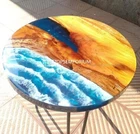 Round Ocean Blue Epoxy Table, Side Table and Coffee Table Unique Epoxy Wood Deco