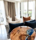 Round Ocean Wave Epoxy Resin River Beach Coffee & Tea Table Top Handmade Desk De