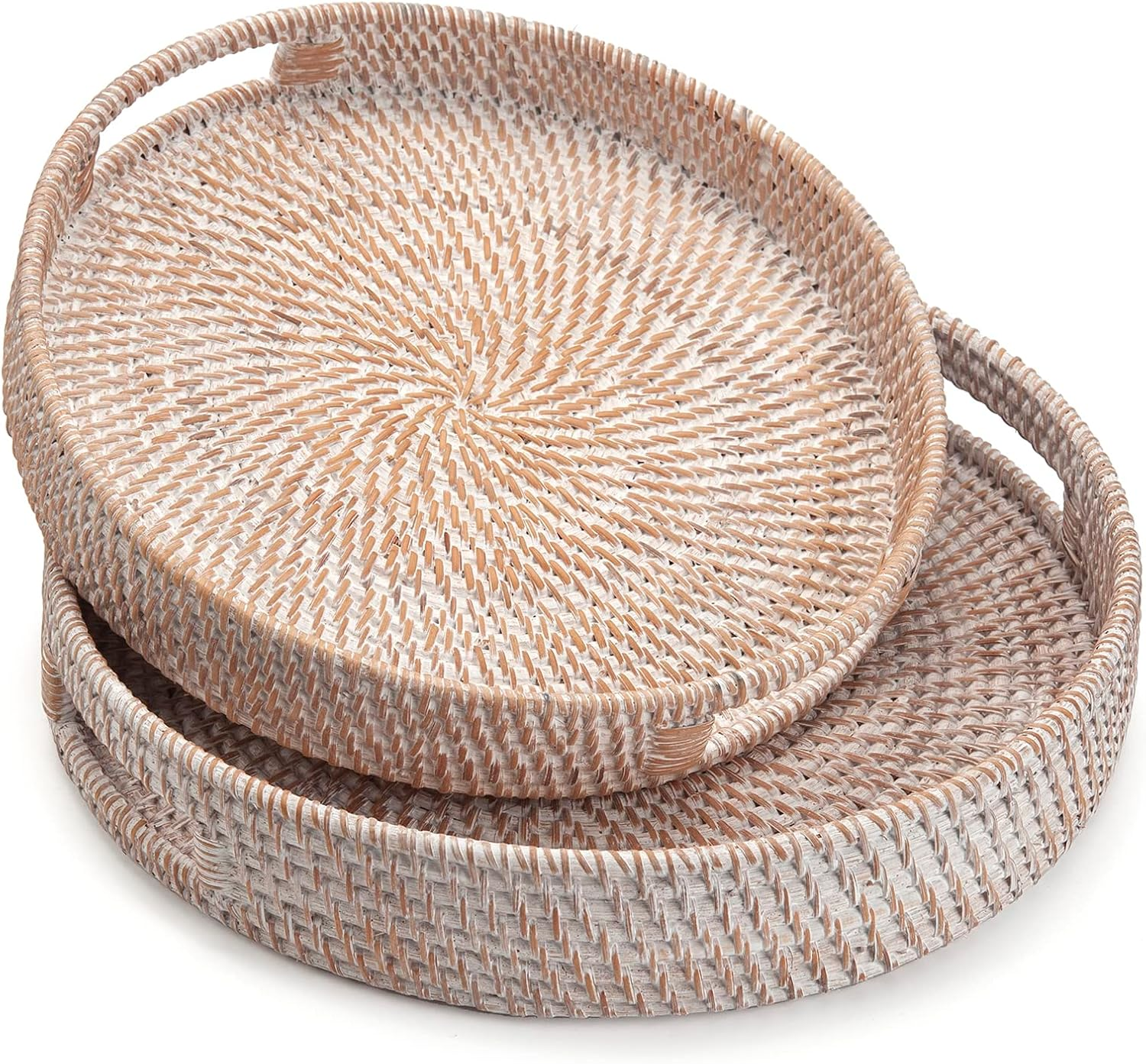 This rattan serving tray is such a stylish and practical addition to my living room! The woven design gives it a cozy, natural look, and the sturdy handles make it easy to carry. Perfect for serving coffee, snacks, or even as a decorative piece. Love the whitewash finish—it matches everything! Lightweight yet durable, and just the right size for my coffee table. Highly recommend for anyone looking to add a touch of boho charm to their home!