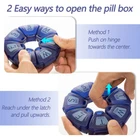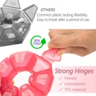 Easy To Use - Two easy way to open the 7 day pill box,one is push on hinge towards the center,another is reach under the latch and pull upwards.(the main picture has a graphic introduction) Week Pill Box Organizer - Easy to load, large pill compartments for capsule or tablets of any size,it can hold about 25 small pill or 10 capsule in each compartment for daily use. the translucent cover is convenient for you to distinguish pills. High-quality Materials - The daily medicine pill organizer are made of safe TPU soft rubber material, anti-drop and anti-slip. when you need to replenish medicines, you will find that the TPU material can help you open and fill vitamins and pills more easily. Comes with Large Lettering - The daily pill box organizer also comes with large lettering and include braille dots to help you distinguish the medicines stored in each compartment more clearly and simply,large high quality printed days that will never peel off, include braille dots. Easy to Carry - beautiful design, comfortable feel, simple structure, easy to clean, easy to carry, can be put in our pockets, wallets, handbags, suitable for business travel