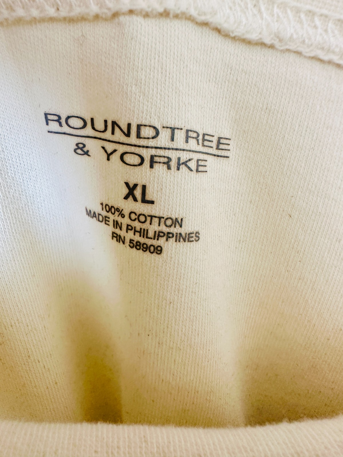 Classic and comfortable, this Roundtree & Yorke Men’s Mock Neck Shirt in ivory (off-white) is made from 100% cotton for softness and breathability. It’s perfect for layering during the cooler months or wearing alone for a clean, classic look. Please note — this shirt has a small faint yellowish spot on the front (see photos). Otherwise, it’s in good pre-owned condition with no holes, tears, or major wear.