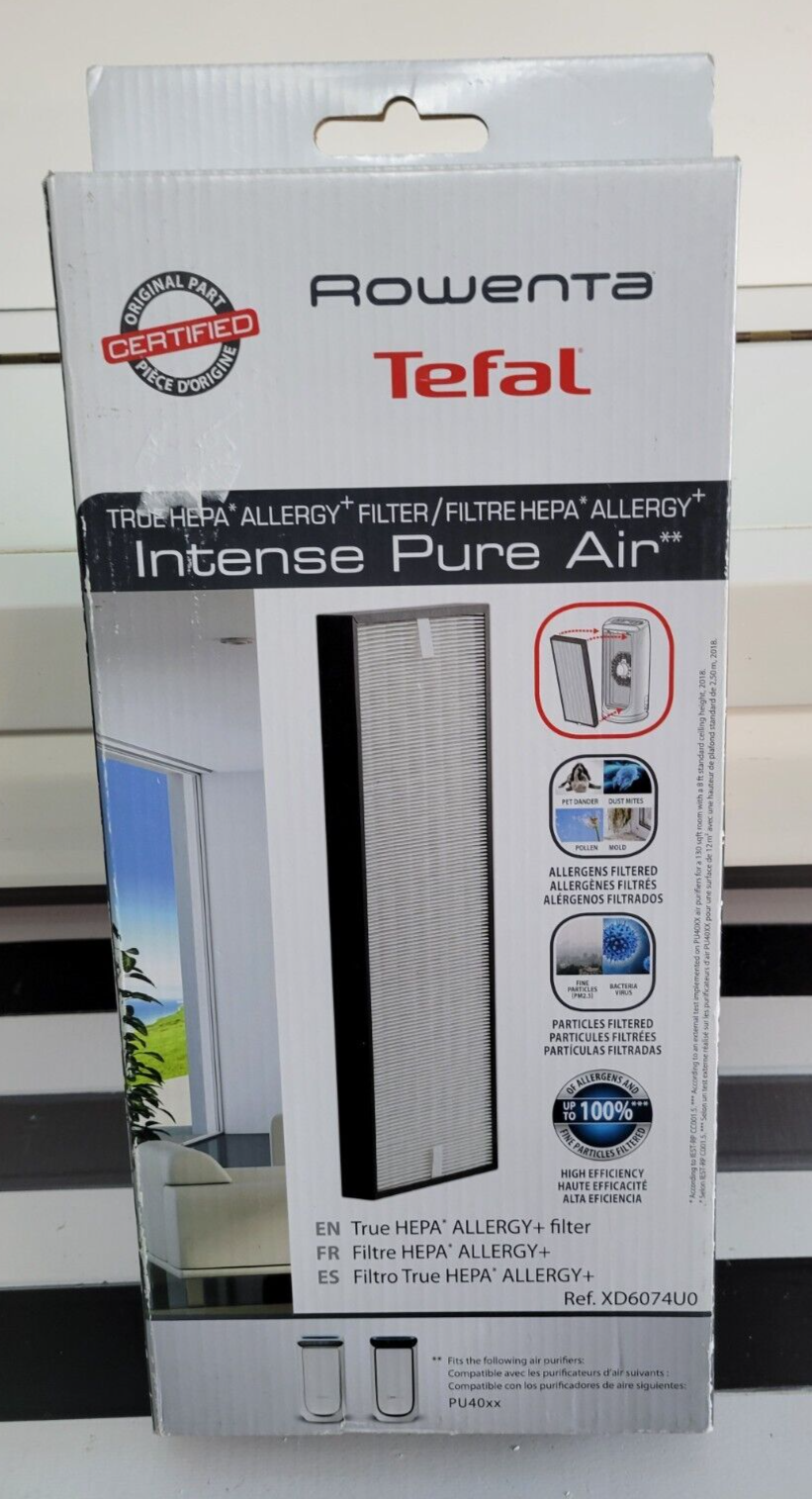 ROWENTA TEFAL INTENSE PURE AIR HEPA FILTER 14.5 BY 6.75 INCHES PU40XX XD6074UO This is new - open box - still sealed! Fantastic buy!!! Rowental TEFAL Intense Pure Air Hepa Filter Type: PU40XX Ref: XD 6074UO Size: 14 1/2" by 6 1/4" by 1 1/2" FREE SHIPPING!!!