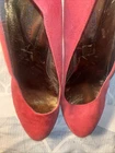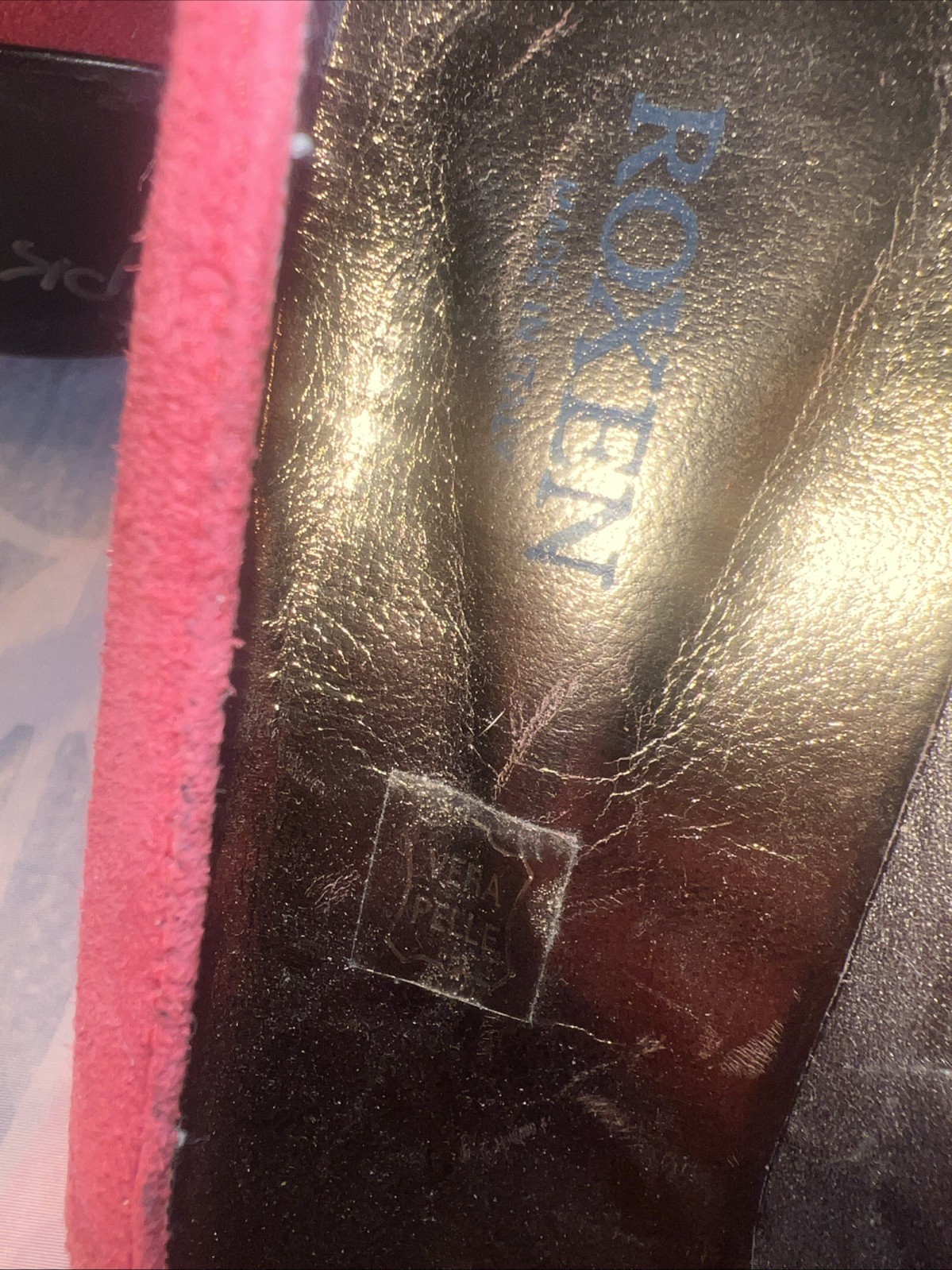 Elevate your look with these beautiful Roxen red suede pumps. Crafted with genuine leather (indicated by the "Pelle" symbol on the sole), these classic pointed-toe heels are perfect for a night out or adding a pop of color to your office attire.