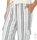 Roxy Women's Striped Cargo Pockets Pants Color: Black Size: Large Contents: 55% Linen / 45% Viscose