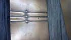 This beautifully designed letter holder and letter opener set by Roy Croft showcases stunning art deco features. Crafted from high-quality cooper metal, this vintage piece is not only elegant but also durable. Made in the United States, this handmade set is perfect for collectors of desktop items and pens & writing instruments. Ideal for use at home or in the office, this letter holder and letter opener set is a unique addition to any collection. Whether you are a fan of vintage items or appreciate the art deco style, this piece is sure to impress. Don't miss out on the chance to own a piece of history with this Roy Croft cooper metal set. See photos the letter holder is 3 1/4" high and 4 7/8" wide and the letter opener is 7 3/4" long and 1 1/4" wide at the handle