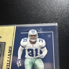 This item is a 2004 Playoff Prestige trading card featuring Roy Williams, a player for the Dallas Cowboys in the National Football League (NFL). The card is a Game Day Jersey Card, indicating that it includes a piece of memorabilia from one of Williams' games. Manufactured by Playoff, this sports trading card is part of the 2004 set and is numbered GJ-16. The card does not feature an autograph and is described as being in mint condition, making it a desirable collectible for fans of sports trading cards and Dallas Cowboys memorabilia.