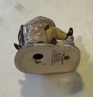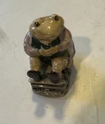 This beautiful figurine features a colorful ceramic frog named Mr. Jackson sitting comfortably on a chair. Handmade and hand-painted in the UK by Royal Albert in 1989, this figurine is a rare collectible from the Beatrix Potter collection. The intricate details of the toad's features and the chair's design make it a great addition to any room and perfect for any occasion. The small size of the figurine, measuring 2.75 inches in height and 2 inches in width, makes it easy to display and its glazed finish gives it a glossy shine. The all-over pattern showcases the toad's unique personality and adds to its charm. This original piece is a must-have for any animal lover and collector, and it comes unboxed for easy transport.