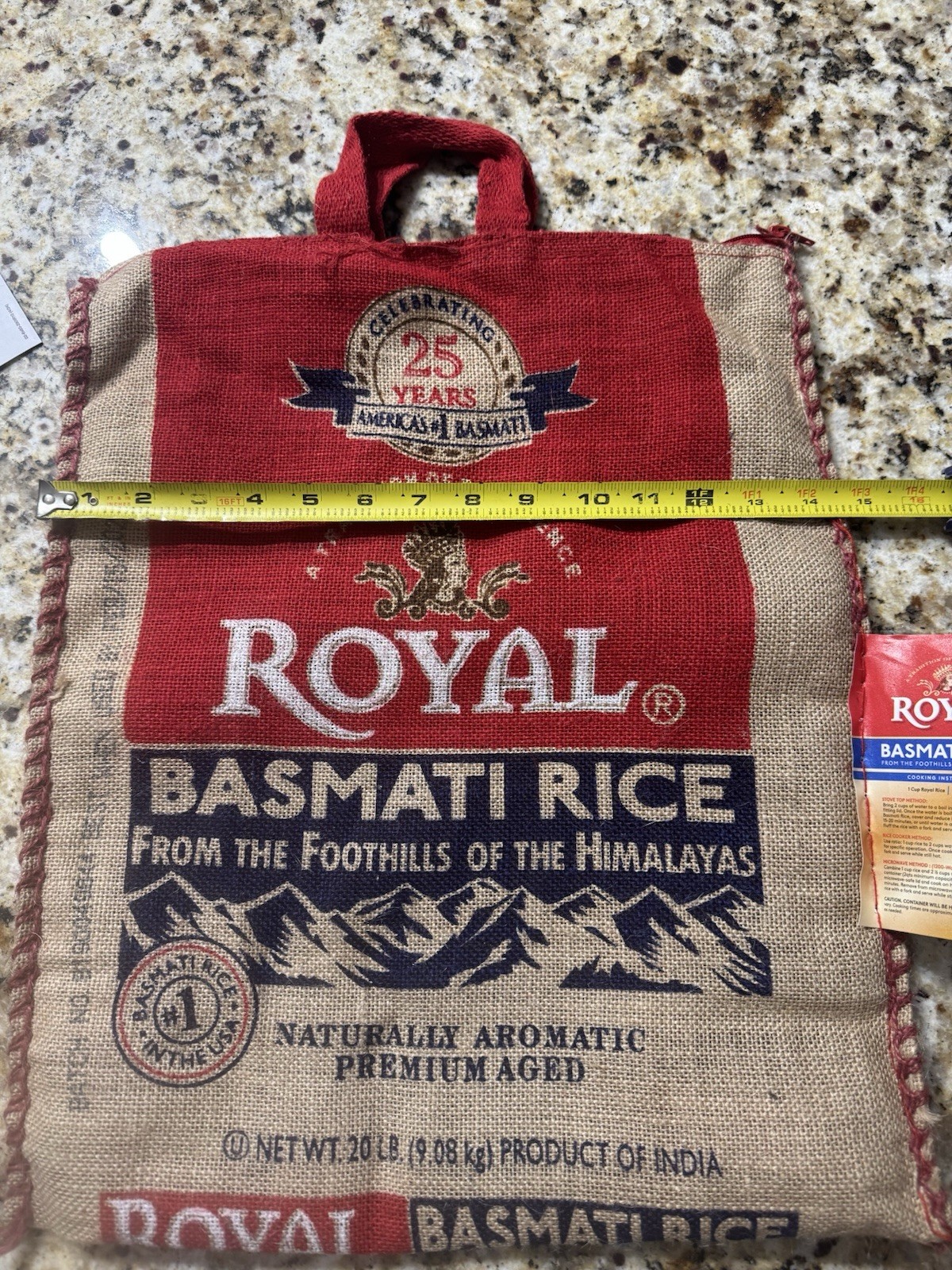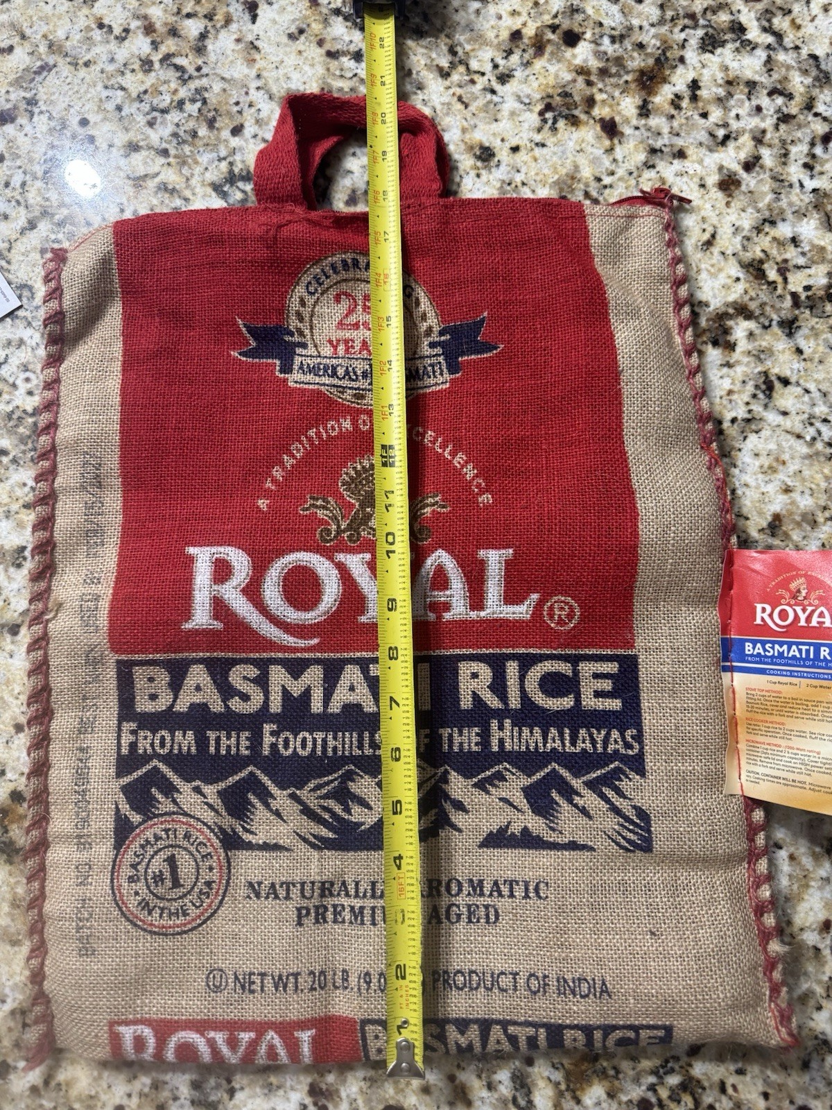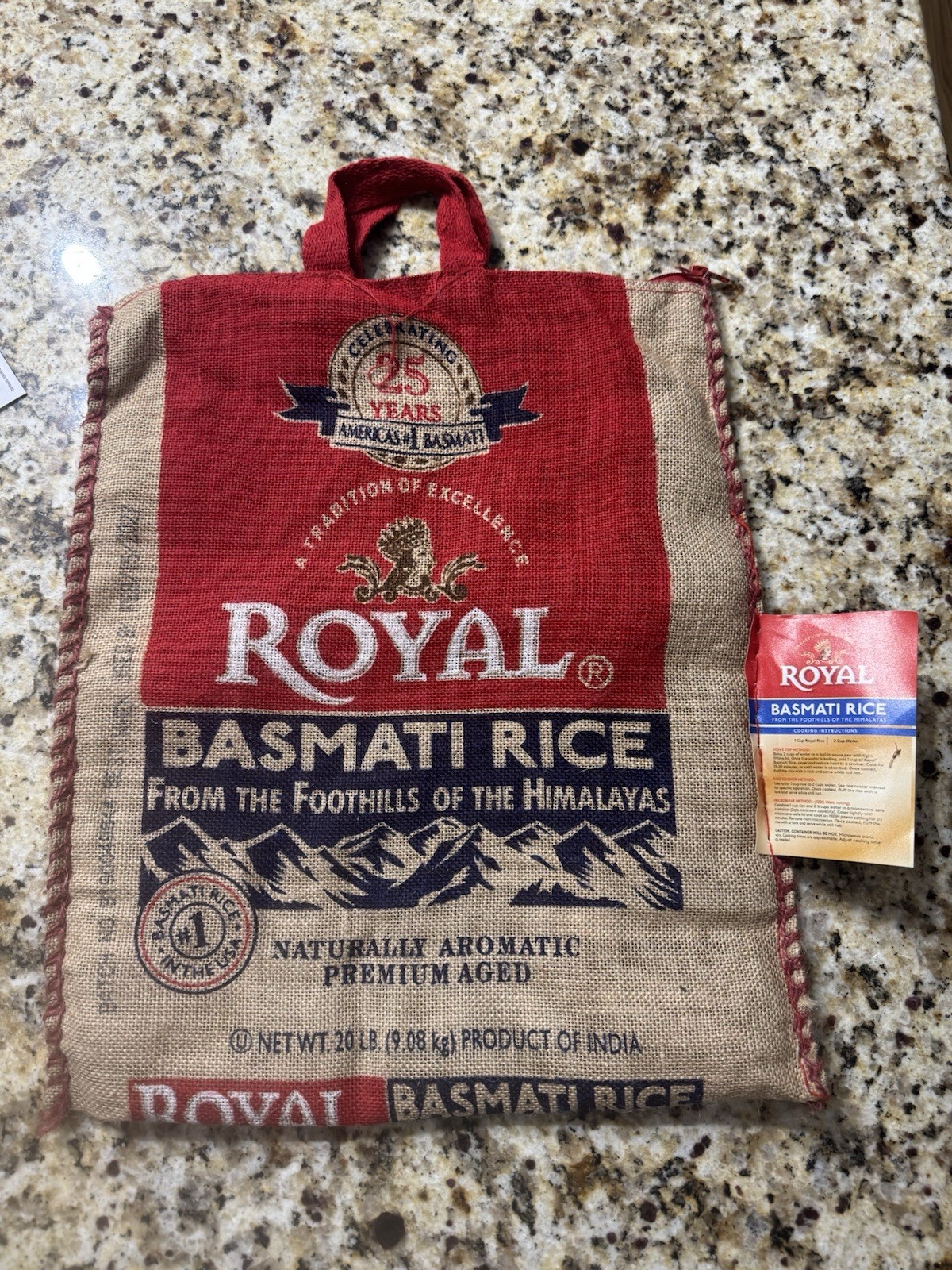 Royal Basmati Rice Bag 20lbs Burlap Handles Zipper Heavy Duty 25th Anniversary