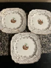 Vintage Royal China Warranted 22kt Gold Square Snack Cheese Salad Dessert Plate Square Scalloped Edges. Scene in the middle. Gold lace ornament and pretty pattern around the rim Some crazing. See pics. The mark on the back clearly reads "Royal China," which was the name of a prolific company located in Sebring, Ohio. Royal was founded in 1934 during the aftermath of the Great Depression.