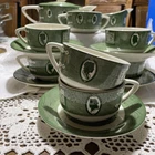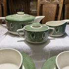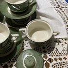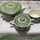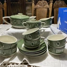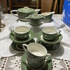 Great set! 1 tea pot w/lid 1 sugar w/lid 1 creamer 5 saucer/plates (one has very tiny chip, last picture) 6 tea cups Selling as is, as found. Condition is as shown in photos. You are purchasing the item that is in the pictures. The pictures are part of the description. If you have questions please contact me before bidding and before you have won the auction. I am more than willing to help answer any questions or send more pictures prior to the auction ending. Only item in title and description is included in sale. Nothing in background included. Colors shown can very from computer to computer Thank you! 😊 I ship on Mondays and Thursdays.