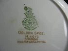 Manufacturer: Royal Doulton China - Made in England Pattern: Golden Spice - gold trim Item: Bread and Butter Plate Size: 6 1/8" diameter Condition: Excellent Shipping for domestic and Canadian rates can be found in the item description. We will ship international and rates will be determined by location.