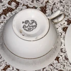 Sought after elegant burgundy tea cup and saucer set features a mix of peach or apple with blueberries and elderberries, all accented with gold. The set is made of fine bone china and was crafted in England Please let me know if you have any questions Check out the other teacups and saucers offered for sale in my store for sales and new inventory coming soon