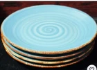 The Royal Norfolk Set includes 4 Turquoise Blue Swirls Mid Century Style Salad Plates, each measuring 7.5 inches in diameter. The plates feature a unique swirl pattern in a vibrant blue color, adding a touch of Mid-Century Modern style to any table setting. These salad plates are part of the Century product line, showcasing a timeless design that is both functional and aesthetically pleasing for everyday use or special occasions.