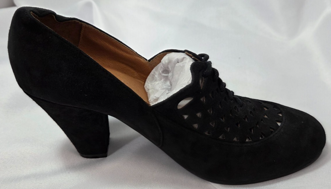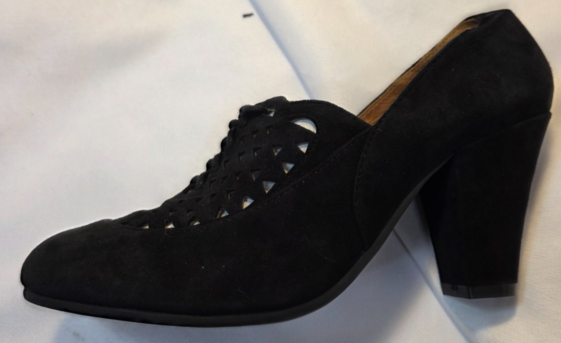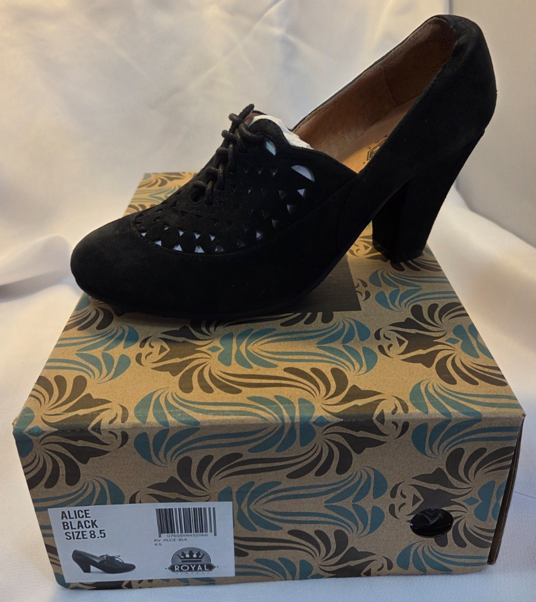 Royal Vintage Vintage Alice Black Suede Wedge Heel Shoe Size 8.5 Brand: Royal Vintage Overall Condition: New in Box. See pictures for details. Materials: Suede and man made materials. Shipped with USPS Priority, Flat Rate or, when possible, First Class Mail. Royal Vintage Size 8.5 block type Heel 3" Lace up Cushioned insole Vintage suede laser cut fall trends cottage core retro neutral Brown suede 40s reproduction cutout oxfords: Royal Vintage Shoes "Alice" oxfords in Black Details for Shopper Size: 8.5 Shoes Width: 3.5 Heel Height: 3 inches Heel Type: Block/Wedge Toe Style: Closed Almond Toe Payment Policies We accept payment through PayPal, credit card, and debit card. Please note that the item may be relisted if payment is not received within the 10 day period. Shipping Policies Delivery estimates will be displayed at checkout. In-store pickup is also available if you would like to visit us in store. We ship to Continental United States only. Terms of Sale Each item we sell is unique. There are no exchanges for the same item available. All items are carefully inspected by My Sister’s Closet of Monroe County’s quality control team prior to shipping. Please carefully review item details. If you have questions, please message us regarding the item before purchasing. Note: Due to the different monitor and light effects, the actual color of the item shown might be slightly different from the color in pictures. Return Policy We strive to describe and measure our items accurately. If your order is not what you expected, we accept returns under the following conditions: The item was not as described as listed The wrong item was shipped. The item does not fit. If the wrong item was shipped, we will attempt to replace it with the item originally ordered. Please note - items not returned in the exact same condition, with tags attached, may be subject to a partial refund to account for loss of the item’s value. Please refer to eBay Return policy for more details. You are covered by the eBay Money Back Guarantee if you receive an item that is not described as listed. Return Requirements: The buyer must return the item within 30 days of receipt. Buyer is responsible for return shipping charges. The item(s) must be returned in the original condition, unworn, with tags attached. Thank you for shopping with us! A little bit more about us… My Sister’s Closet is a nonprofit serving women in poverty since 1998. Our mission is to help women move closer to economic self-sufficiency by providing essential career development tools. This includes job training, mentoring, advocacy services, and professional attire for job interviews to help them find employment. We have helped over 2500 women thus far. Most clients we serve have been dealing with homelessness, domestic violence, illness, divorce, job loss, economic recovery and/or lack basic education. Visit Our eBay Store