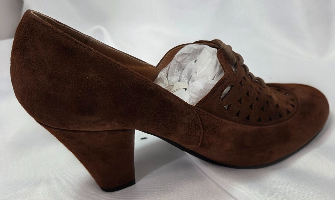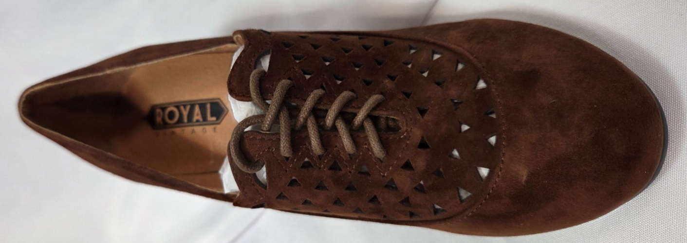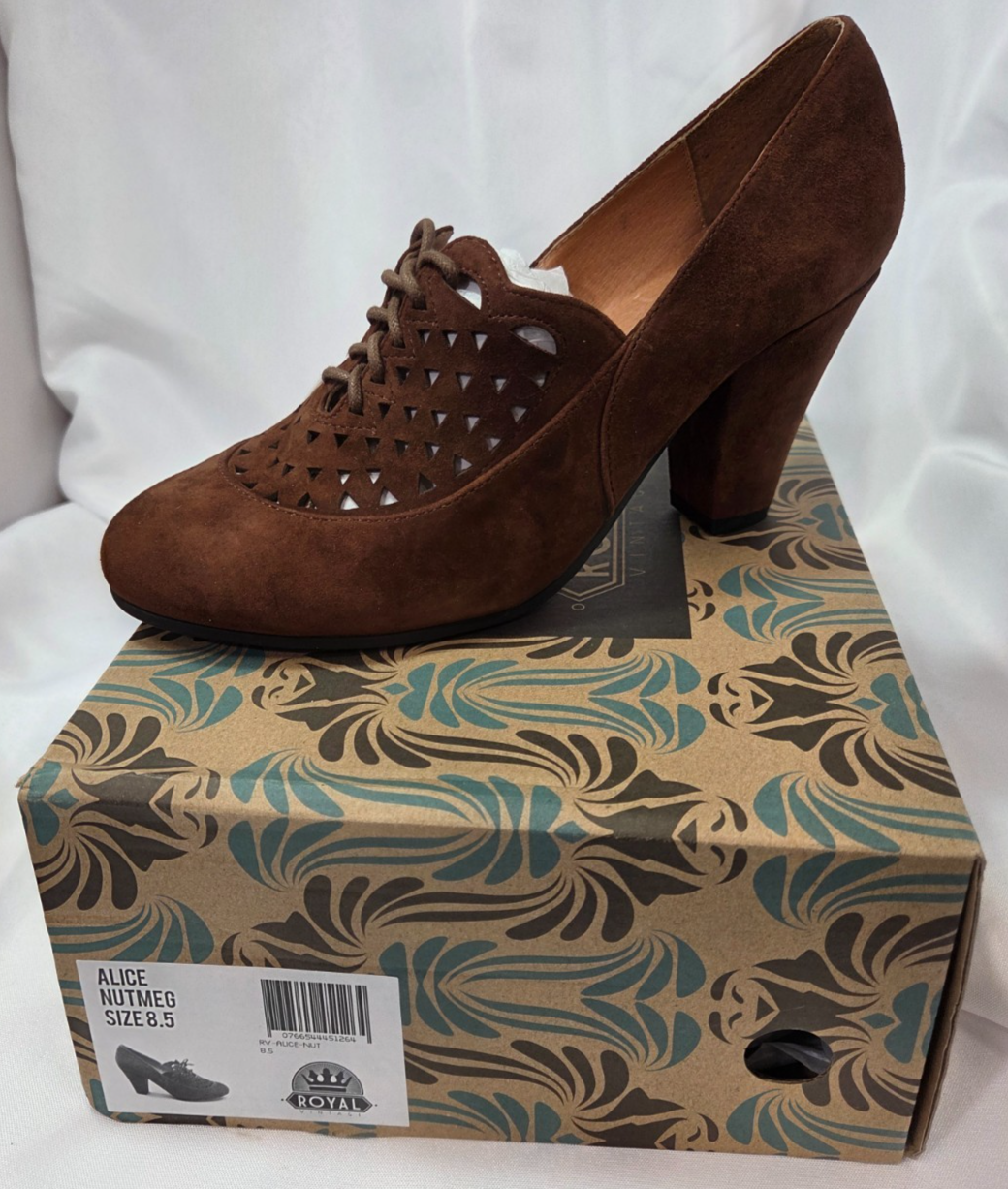 Royal Vintage Vintage Alice Nutmeg Suede Wedge Heel Shoe Size 8.5 Brand: Royal Vintage Overall Condition: New in Box. See pictures for details. Materials: Suede and man made materials. Shipped with USPS Priority, Flat Rate or, when possible, First Class Mail. Royal Vintage Size 8.5 block type Heel 3" Lace up Cushioned insole Vintage suede laser cut fall trends cottage core retro neutral Brown suede 40s reproduction cutout oxfords: Royal Vintage Shoes "Alice" oxfords in Nutmeg Details for Shopper Size: 8.5 Shoes Width: 3.5 Heel Height: 3 inches Heel Type: Block/Wedge Toe Style: Closed Almond Toe Payment Policies We accept payment through PayPal, credit card, and debit card. Please note that the item may be relisted if payment is not received within the 10 day period. Shipping Policies Delivery estimates will be displayed at checkout. In-store pickup is also available if you would like to visit us in store. We ship to Continental United States only. Terms of Sale Each item we sell is unique. There are no exchanges for the same item available. All items are carefully inspected by My Sister’s Closet of Monroe County’s quality control team prior to shipping. Please carefully review item details. If you have questions, please message us regarding the item before purchasing. Note: Due to the different monitor and light effects, the actual color of the item shown might be slightly different from the color in pictures. Return Policy We strive to describe and measure our items accurately. If your order is not what you expected, we accept returns under the following conditions: The item was not as described as listed The wrong item was shipped. The item does not fit. If the wrong item was shipped, we will attempt to replace it with the item originally ordered. Please note - items not returned in the exact same condition, with tags attached, may be subject to a partial refund to account for loss of the item’s value. Please refer to eBay Return policy for more details. You are covered by the eBay Money Back Guarantee if you receive an item that is not described as listed. Return Requirements: The buyer must return the item within 30 days of receipt. Buyer is responsible for return shipping charges. The item(s) must be returned in the original condition, unworn, with tags attached. Thank you for shopping with us! A little bit more about us… My Sister’s Closet is a nonprofit serving women in poverty since 1998. Our mission is to help women move closer to economic self-sufficiency by providing essential career development tools. This includes job training, mentoring, advocacy services, and professional attire for job interviews to help them find employment. We have helped over 2500 women thus far. Most clients we serve have been dealing with homelessness, domestic violence, illness, divorce, job loss, economic recovery and/or lack basic education. Visit Our eBay Store