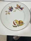 This Royal Worcester bread plate was manufactured in England in 1961 as part of the Evesham Gold collection. The plate features a round shape with a pattern of royal gold accents on a multicolor porcelain material. Measuring 6.75 inches across, this vintage bread plate is a mid-century modern piece that is suitable for all occasions, adding a touch of elegance to your table setting.