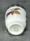 Royal Worcester Evesham Porcelain Egg Coddler with lid. King Size (double), 4 1/8" tall Featuring a rare 3 fruit pattern: Blackberry, Red Currant, Peach Makes delicious coddled eggs! Add your own extra ingredients! Made in England. Mint condition! NO damage or wear. *All items securely packed and shipped within one business day.