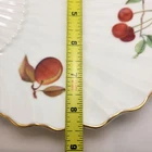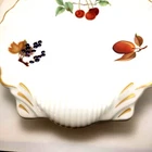 Vintage Royal Worcester Evesham Gold Shell Shaped Dish 1961 Fruit. Great condition on this Vintage piece. Gold gilding on edges. Might have slight wear from aging gracefully. No chips cracks or crazing. 24-5 Production mark. Shipped with USPS Advantage or Priority Mail.