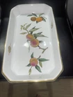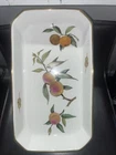 This Royal Worcester Evesham serving dish is a vintage piece of art pottery made in the United Kingdom. The rectangular dish has a glossy finish and is made of high-quality porcelain material. It measures 13 3/4 inches in length and 1 3/4 inches in height, 8 inches in wide with one compartment and a printed backstamp. The dish features a beautiful all-over multicolor pattern and is perfect for serving your favorite dishes to your loved ones. It's a must-have for any collector of fine dinnerware and is an original piece from the Royal Worcester brand. Add this exquisite serving dish to your collection today!