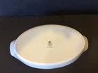 NICE OVAL CASSEROLE FISH DISH MADE BY ROYAL WORCESTER MADE IN ENGLAND NICE WHITE PORCELAIN GOLD TRIM CORN AND APPLE DESIGN MEASURES 14" x 7 1/2" x 2" IN GREAT CONDITION WITH NO CHIPS, CRACKS OR DEFECTS