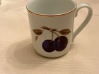 Royal Worcester, Evesham Gold, (Set of 4) Mugs - 1961 - 8oz These mugs are in excellent condition with gold trim They have a pear on one side and plums on other side 3” across on top I don’t believe these were used. This design is difficult to find with the pear and plums Only place I could find one of these with this design was on Replacments. There cost was $30 each From smoke free home