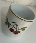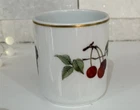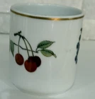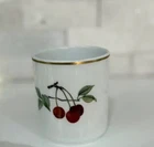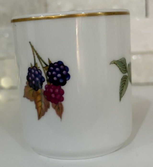 The Royal Worcester EVESHAM Porcelain Cup is a vintage piece from the 1960s featuring a charming fruit design of cherries and grapes with gold trim. This medium-sized cup has a capacity of approximately 8 fluid ounces and is suitable for both hot and cold beverages. Made of porcelain, this cup is adorned with a classic Evesham pattern. Perfect for all occasions, this cup is a collectible item from the United Kingdom that brings a touch of retro elegance to any table setting. It’s in very nice vintage condition, as pictured, with no chips, cracks, or crazing.