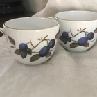 Vintage Cups - set of 4Royal Worcester Evesham Cups Tea/ CoffeePretty Print : Apple & Berries - see pics of the patterns on both sides Gold Rim fine procelain stamped on bottom 2.75" tall Preowned - Vintage - Good - normal use and surface wear . Thanks for Looking: KeyWestBoardWalkVintagesee my other vintage collectible housewares.