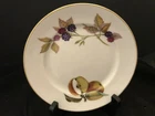 Up for your consideration is a set of three Royal Worcester Evesham Plates that include one dinner, one salad, and one bread plate. Royal Worcester’s Evesham Pattern was introduced in 1961 as the beginning of a new trend for more informal dining that was to bring the humble casserole dish from the kitchen to the dining table. Evesham, named after the local fruit-growing region near Worcester was Royal Worcester’s best-selling brand. All three plates are trimmed in gold to add to the beauty of the piece. The dinner plate measures 10" round, the salad plate is 8 1/4" round and the bread plate is 6 1/2" round. All three plates are in mint condition and look like they have never been used. The dinner and the salad plate are marked with the same backstamp but the bread plate does have a different one. I have shown all three backstamps above. Please make sure to visit my eBay store "Robin's Vintage Finds" as I have several other items in this pattern for sale. I love to combine shipping whenever possible in order to save you money.