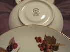 This elegant Royal Worcester "Evesham" set is perfect for tea lovers! The delicate fruit and berry design with gold rims adds a touch of sophistication. Despite one repaired chip, the set is in fantastic condition—ideal for hosting or gifting. A timeless addition to any collection!