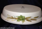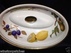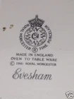 ROYAL WORCESTER "EVESHAM GOLD" COVERED ENTREE DISH We are offering a covered entree dish in the "Evesham Gold" pattern by Royal Worcester. The made in England dish measures approximately 10 3/8" in length by 6 7/8" in width & 3 1/4" tall with the lid on. It weighs approximately 3.2 lbs. It is in the Evesham Gold style with various fruits & leaves as well as asparagus & wheat on a white background on the exterior. The handle of the lid has gold trim. There is gold trim along the edge of the dish. The covered entree dish is in very good condition -no cracks, chips or crazing noted! There is wear on the gold trim. A great addition to your collection! We double box all fragile items to help withstand the stress of transport. The double boxing adds to the shipping weight and postal expense but we believe the added precaution in packing is a worthwhile investment to ensure safe arrival of your item. The package is shipped from Minnesota so we are usually charged a distance premium to most destinations by the shipping services over which we have no control. We do not make money on shipping. We appreciate a five star feedback for the five star product and service we strive to deliver. THANK YOU! We leave feedback after feedback has been left for us by the purchaser. Shipping weight 7 lbs