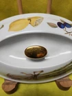 Royal Worcester Evesham Gold 10in Oval Serving Dish. This dish is in Excellent Used condition . No chips or cracks. Some minor gold missing on the rim,knob and handles. I will gladly try to answer any questions you may have. I have other Royal Worcester evesham listings.