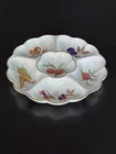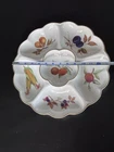 eBay Listing: Vintage Royal Worcester Evesham Gold Trim 13½” Six Part Divided Dish Description: This is a vintage Royal Worcester Evesham Gold Trim divided serving dish, featuring six sections, made in England in 1961. The dish is beautifully crafted from classic white porcelain with the iconic Evesham fruit pattern, showcasing a variety of vibrant fruits and vegetables, all accented with a delicate gold trim around the edges. The Royal Worcester Evesham pattern is known for its timeless appeal and high-quality porcelain craftsmanship. This dish is in excellent, possibly unused, condition, and would be a stunning addition to any formal dining setting or collector’s display. The dish is marked on the back with the Royal Worcester Evesham stamp, indicating its production in 1961. Measurements: • Length: Approx. 13.5 inches • Width: Approx. 13.5 inches • Height: Approx. 1.5 inches Condition: • Excellent vintage condition (appears unused). • No chips, cracks, or signs of wear. • See photos for more details. Details: • Made in England in 1961. • Classic white porcelain with Evesham fruit pattern. • Marked on the back with the Royal Worcester Evesham - Made in England 1961 mark. This piece exemplifies the craftsmanship and beauty of Royal Worcester porcelain and is perfect for collectors of vintage kitchenware or those who enjoy serving with a touch of elegance. Note: Royal Worcester, founded in 1751, is one of the oldest porcelain manufacturers in the world and is known for its quality and artistic designs. The Evesham pattern, introduced in the 1960s, remains a favorite for its vibrant depictions of fruits and vegetables, making it highly desirable among collectors. In the Spirit of Saint Francis: As part of our ongoing commitment to giving back, 10% of the proceeds from this sale will be donated to the Humane Society, helping to support animals in need. Check Out Our Other Items: Be sure to visit Saint Francis Gifts on eBay to explore more unique and collectible items.