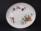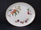 Classic Royal Worcester Evesham Gold 13" serving platter. This is one of the patterns we registered for our wedding. I loved all of the serving pieces. Fine translucent English porcelain adorned with fresh fruit. Cherries, peaches and raspberries with genuine 22K gold trim. Overall size 13 x 11.5 x 1.25"H. No chips or flea bites. Generous size for your entertaining needs. Not only for carving your turkey, but perfect for cut sandwiches or a cheese and fruit tray. This pattern never is out of style. The fruited design looks lovely on a plate rail or in the back of a china cabinet on display. Please take a peek at my eBay store (see last photos) for many other fine items for entertaining. Thank you for looking. DPCLP