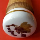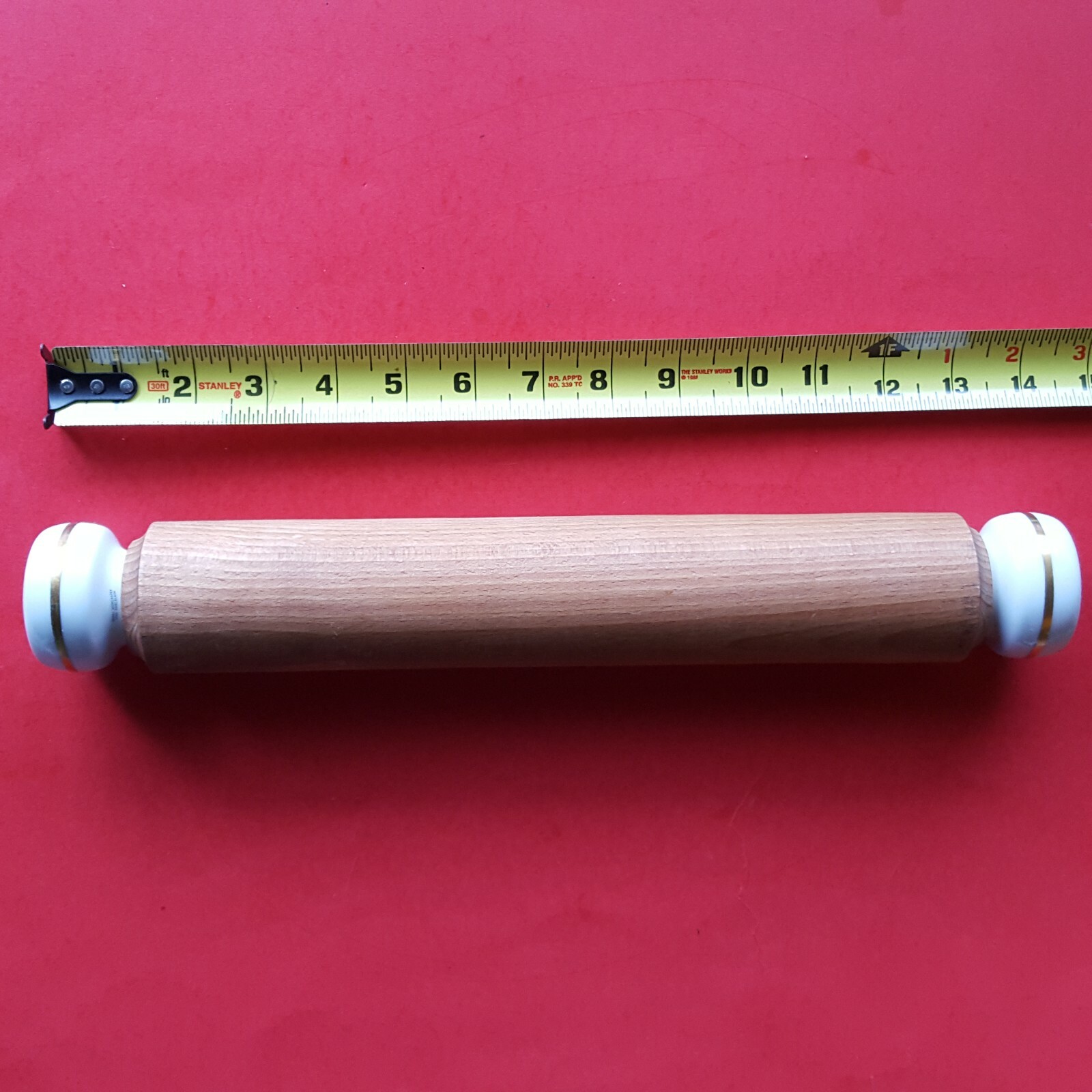 ROYAL WORCESTER EVESHAM GOLD PORCELAIN & WOOD 14" ROLLING PIN. CRABAPPLE CURRANT Item Description You are buying one (1) authentic Royal Worcester 'Evesham Gold' rolling pin. This elegant rolling pin is fashioned of snowy white, fine porcelain handles and a sturdy, hardwood body. The handles are decorated with crabapples and black currants and trimmed with glistening, 22K gold. One handle is labeled with a "Royal Worcester Fine Porcelain" trademark. This hefty rolling pin weighs nearly 1-1/2 pounds and measures approximately 14-1/4 inches long and 2-1/8 inches in diameter. This rolling pin is in EXCELLENT condition. The colors are rich, and the details are distinct. The porcelain is lustrous, and the gold is glossy. There are no chips, cracks, crazing, breaks or repairs. See the photos for further clarification. The item pictured is the item you will receive. This rolling pin will be shipped as a trackable parcel.