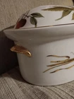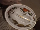 This Royal Worcester Evesham Gold 1.75 QT Porcelain Oval Casserole Dish is an exquisite addition to your kitchen. The dish is crafted from high-quality porcelain material that ensures long-lasting durability. Its elegant gold color and oval shape make it a perfect choice for serving your favorite dishes to your loved ones. The casserole dish is designed with a lid that ensures the food stays warm and fresh. The Royal Worcester brand is known for its high-quality pottery, and this casserole dish is no exception. It is perfect for both everyday use and special occasions. Whether you are serving a small family or a large group, this casserole dish is sure to impress. Excellent condition, no ships or scratches.