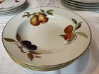Royal Worcester Evesham Gold Dinnerware Evesham Gold by Royal Worcester features assorted fruit still-life designs that look virtually lifelike. These designs are beautifully contrasted against a luminescent white background and striking gold trim. *Excellent Condition *4 piece place setting minus 2 cups and saucers Set includes: 4 - Dinner plates 10.5” 4 - Bread and butter plates 6.75” 4 - Salad plates 8.5” 4 - Rim soup bowls 9” 2 - Cup and saucer set * cup H 2 7/8”, saucer W 3 3/8”