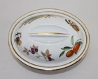 Vintage Royal Worcester Eveshame Gold 4.5 QT Oval Covered Casserole Dish (Made in England) ***ODD MAKER'S MARK*** review photos Measurements: 12" L x 9-3/8" W (rim to rim) x 7-1/4" H (with lid) Weight: 8 LBS 4 OZ Shape: 24 Size: 1 Very good condition and clean. The maker's mark on the bottom is very odd (can't find another example of it anywhere). Even non-authentic examples I have seen look authentic. The fruit patterns and gilt details are spot on, and it came from a collection of authentic pieces. All considerations are visible in the photos provided. ITEM(S) COMES FROM A SMOKE FREE ENVIRONMENT. PLEASE LET US KNOW IF YOU HAVE ANY QUESTIONS, WE ANSWER EMAILS AS QUICKLY AS POSSIBLE. -BUY WITH CONFIDENCE- 100% MONEY BACK GUARANTEED If item(s) arrives defective, damaged, or not as expected it may be returned for a full refund within 30 days after receiving the item(s). Shipping fees will also be reimbursed if an error was made by seller. New items must be returned in the same condition as they arrived at buyer. Any opened or used products that were purchased as new will not be eligible for a refund or exchange. We must be contacted regarding the return as soon as possible after the item(s) is received. Please contact us first before filing a claim with eBay and before leaving negative feedback. We GUARANTEE customer satisfaction, and all emails are answered within 24 hours. -SHIPPING INFORMATION- We offer combined shipping on multiple items. We mail Monday through Friday and have a 1-day handling time. DOMESTIC SHIPPING: The shipping information section is located beneath the Buy It Now icon. Please select between the shipping options available. If you have a special request for a shipping service that is not available for selection, please let us know and we will be happy to fill your request. WORLDWIDE SHIPPING: If you live outside the U.S., click on your country. International orders may be subject to additional Customs fees. Please check with your country's Customs policies before placing an order. All international buyers are fully responsible for all additional fees your order may incur.