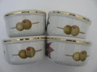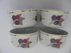 Royal Worcester Evesham Gold Ramekins Berries & Olives Set of 4 These authentic ramekins were made in England during the 1960’s and are part of the Evesham Gold pattern and are now retired. This set of four (4) features a beautiful fruit theme of berries and olives trimmed in gold and has a printed backstamp. They are made of ceramic, giving them a glossy finish that is both decorative and durable that can go from freezer to oven and are dishwasher safe. They measure approximately 3 ¼”in diameter and 1 5/8” tall with a 4 oz. capacity. They are in excellent pre-owned condition with no chips or cracks and the gold is intact. THIS IS A BUY IT NOW FOR ONE SET BUT WE HAVE 2 SETS AVAILABLE TO PURCHASE We have many different items listed in our store, so we ask that you please view them. Thank you for considering our listings and once you receive your item and are happy with our service and products, we ask that you please leave us positive feedback. If for any reason there is any problem, please contact us so we can resolve it.
