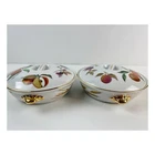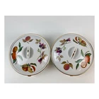 Royal Worcester Evesham Gold Round Casserole Dish w/ Lid Shape 22 Size 4 Serving Condition: Nice condition with some minor signs of wear (stains on edge side) Approx. measurement: 2.5" H x 6.5"-7.5" D