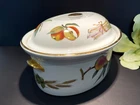 Royal Worcester Evesham Gold 7.5 Pt Large Tureen/Casserole with Knob Lid Remark: This is a very heavy & extra large lidded tureen, made with fine bone china in England Remark: No chip, no scratch, no crack, tiny sign of wearing, some de-color on one handle Tureen Set includes 2 Pieces of: Tureen: 12" long x 9.5" wide x 7.5" tall (5" tall without lid) Knobbed Lid: 11" x 8.25" x 2.75" Weight: 7 lb 13 oz Shipment: Items will be shipped with tracking number. Please feel free to message me if you have any questions. I am happy to answer any questions before you process to purchase.
