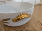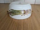 This stunning Royal Worcester serving bowl is a true gem! The elegant asparagus/hops shape and gold trim add a touch of vintage charm to any table setting. Despite being pre-owned, it's in great condition—no chips or damage, just minor signs of age that give it character. The delicate gold leaf details show some lovely craquelure, adding to its timeless appeal. Perfect for special occasions or as a collector's piece, this bowl is both functional and beautiful. A fantastic find for anyone who appreciates classic English china!
